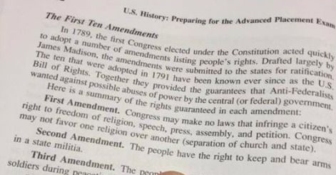 AP history textOne text book actually states about the Second Amendment: “The people have the right to keep and bear arms in a state militia.”  Another states that President Trump is a racist.